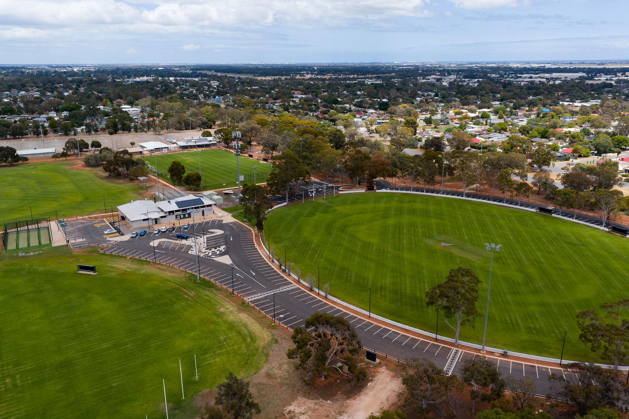 Construction of the Argana Park Redevelopment in Elizabeth Downs. Argana Park features 22 outdoor netball courts, two football ovals, five soccer pitches, and cricket nets. The upgrade comprised construction of new changerooms, carparks, hard wired carpark lighting, and new cricket nets.